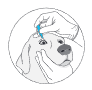 |  | 犬の頭を少し直立させて安定させる。- 目に触れないようにスポイトを直立させて持ちます。- 指を犬の額に当てて、スポイトと目の間の距離を保ちます。 |